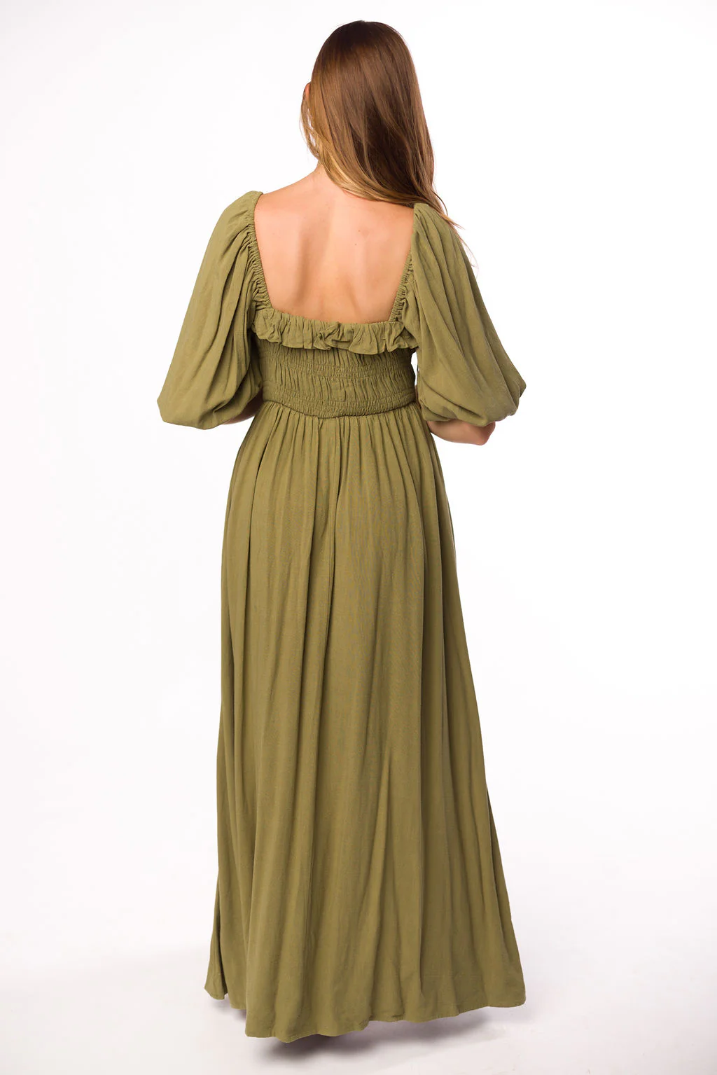 Devon Smocked Maxi Dress in Light Olive - Bump Friendly