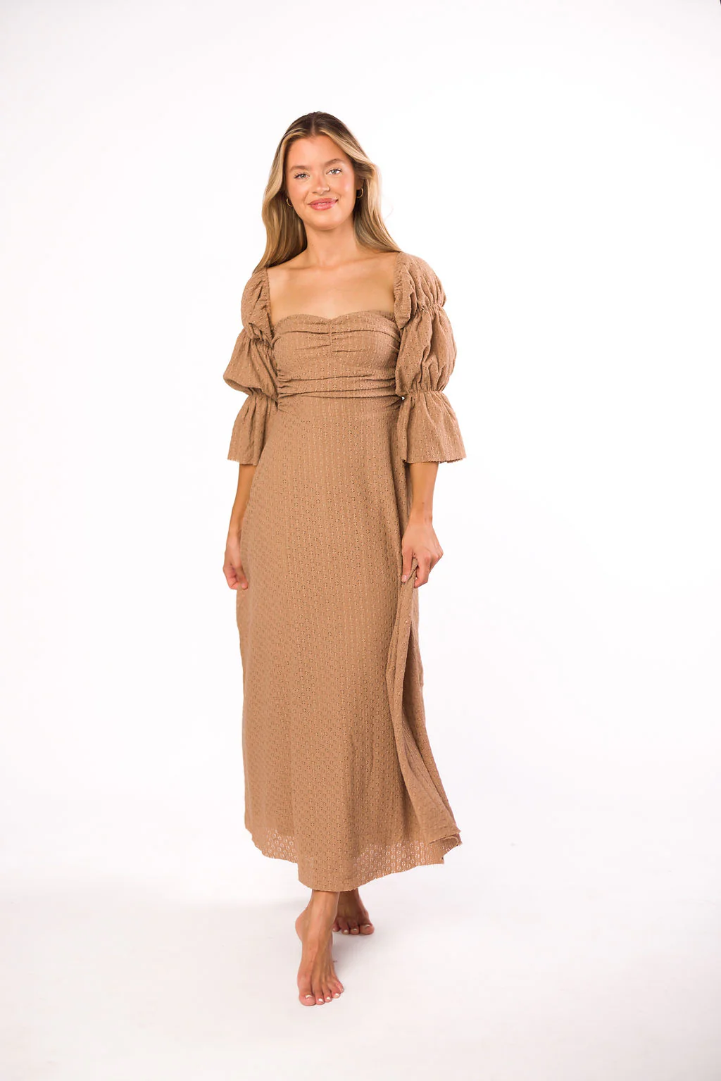 Corrine Tiered Sleeve Maxi Dress with Pockets in Caramel Taupe - Bump Friendly