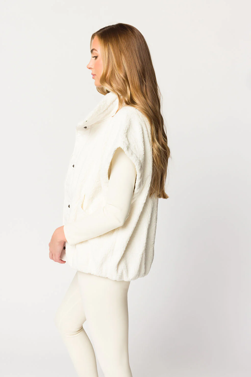 Oversized Micro Sherpa Vest in Ivory