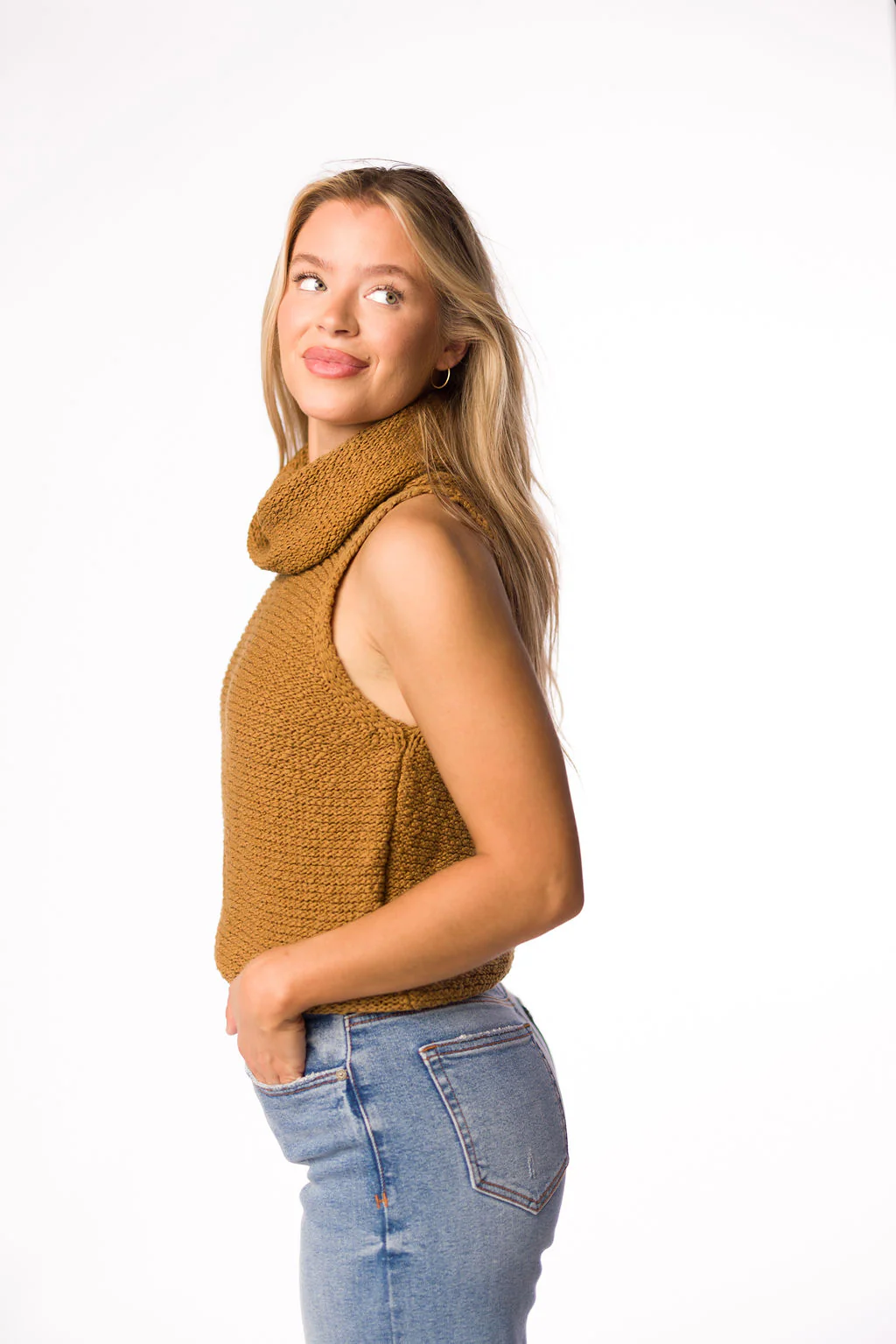 Kat High-Low Turtleneck Sweater in Dark Beige