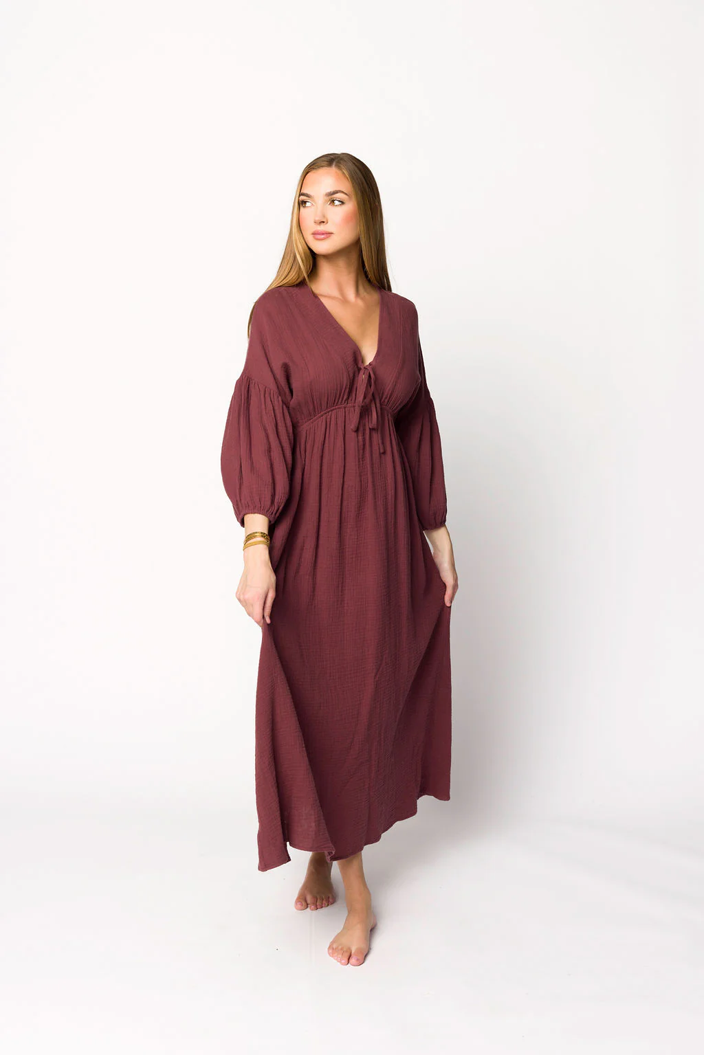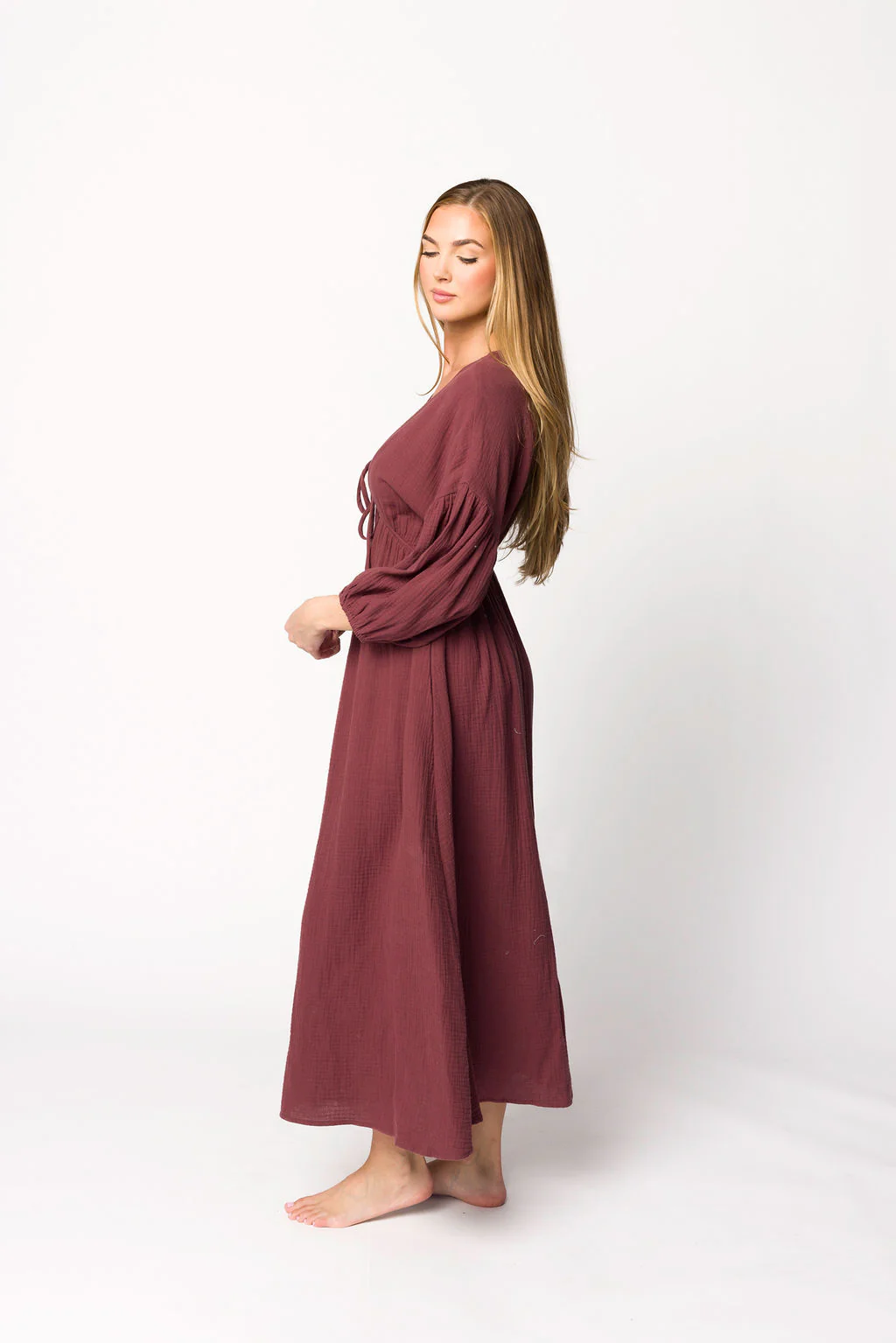 Hunter 100% Cotton Gauze Midi Dress in Redwood (Plum) PRE-ORDER 12/6 - Last Restock! 25% off today only!