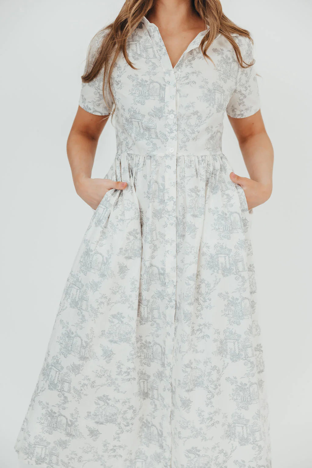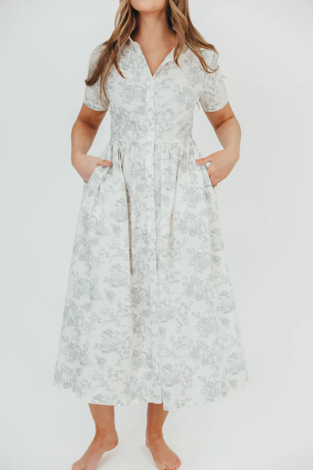 Coastal 100% Cotton Midi Dress in Ivory/Grey/Blue - Bump & Nursing Friendly & Inclusive Sizing (S-3XL) Final Restock!!