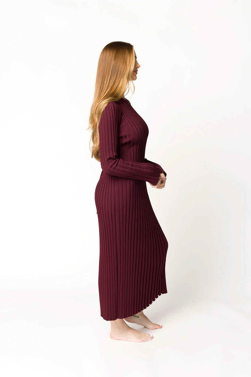 Colette Premium Long Sleeved Ribbed Knit Maxi Dress in Burgundy - Bump Friendly