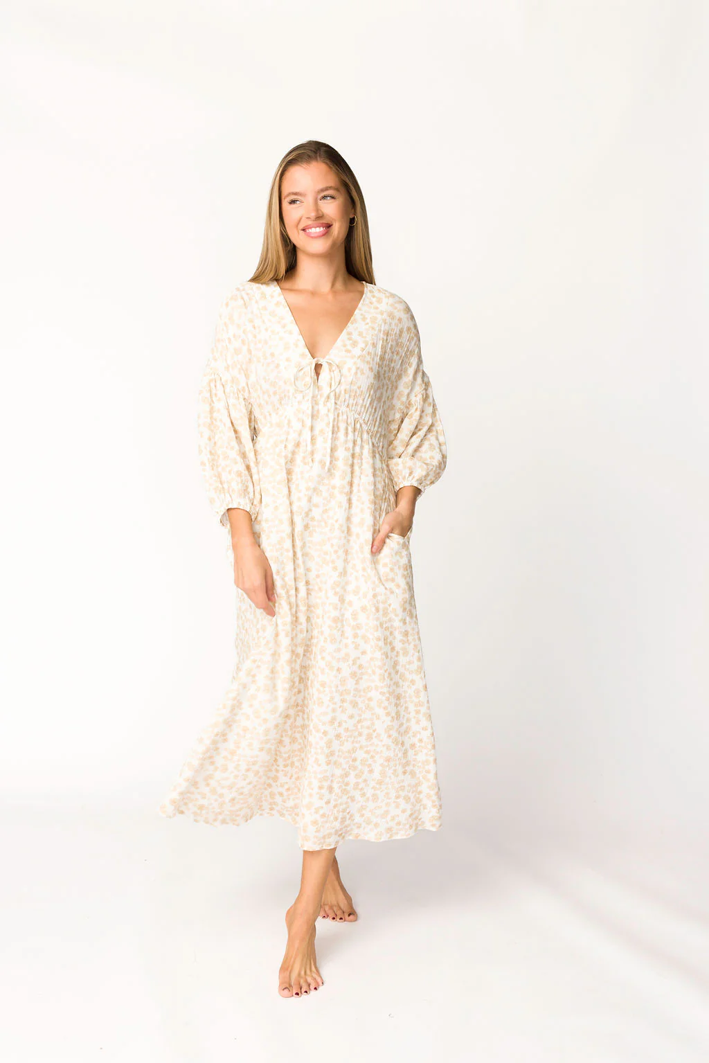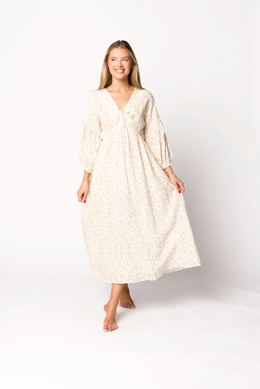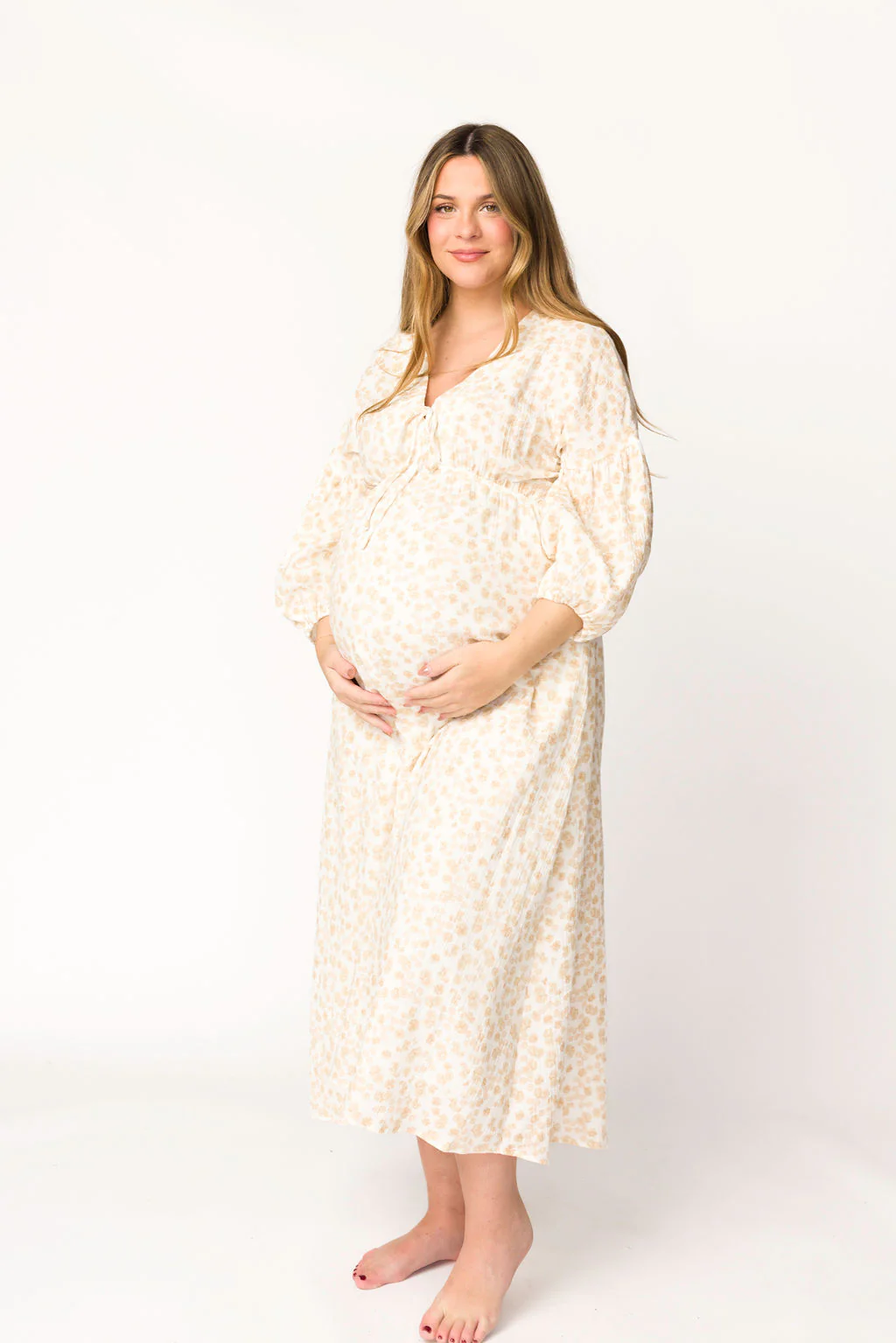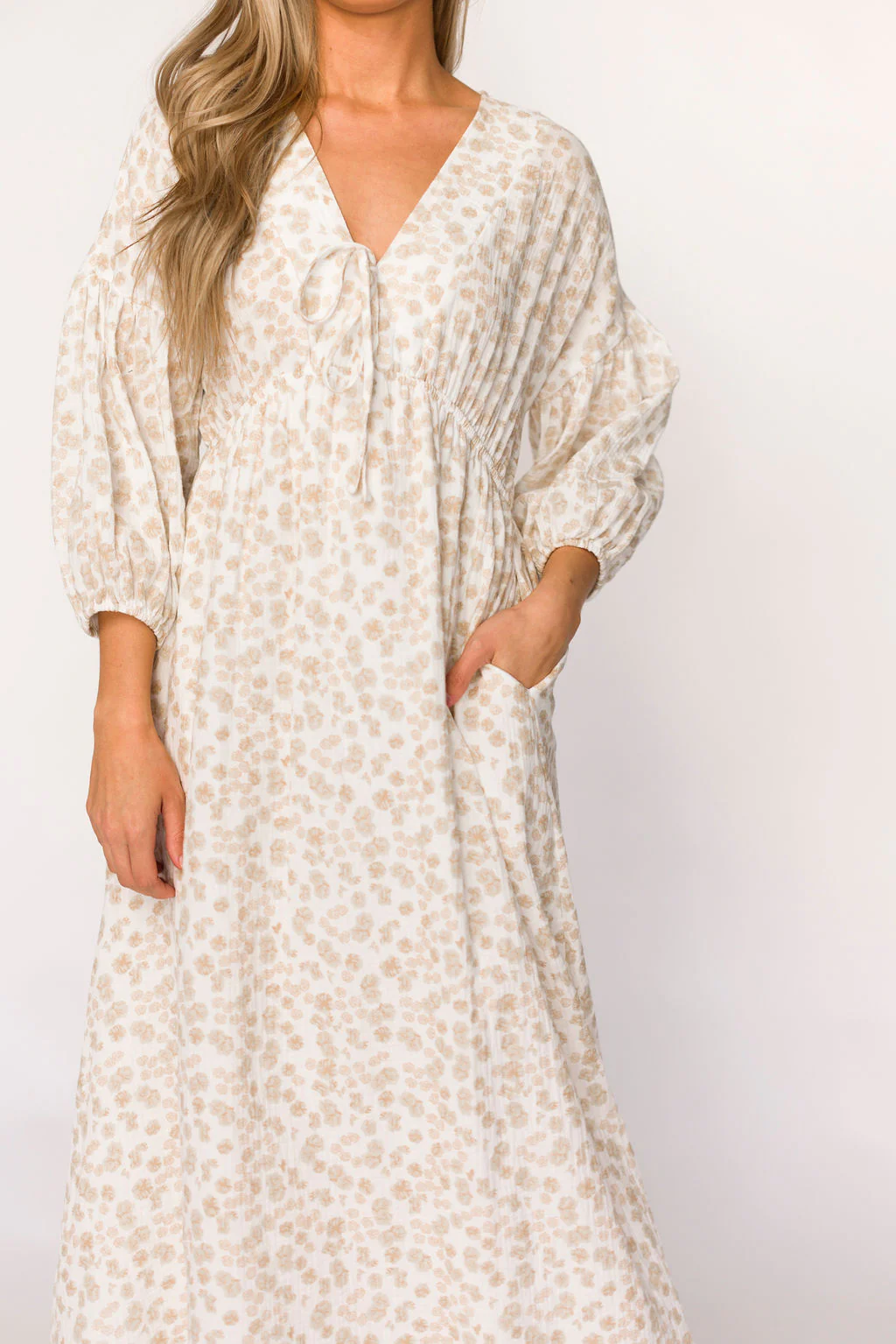 Hunter 100% Cotton Gauze Midi Dress in Natural/Fawn Floral - Bump Friendly