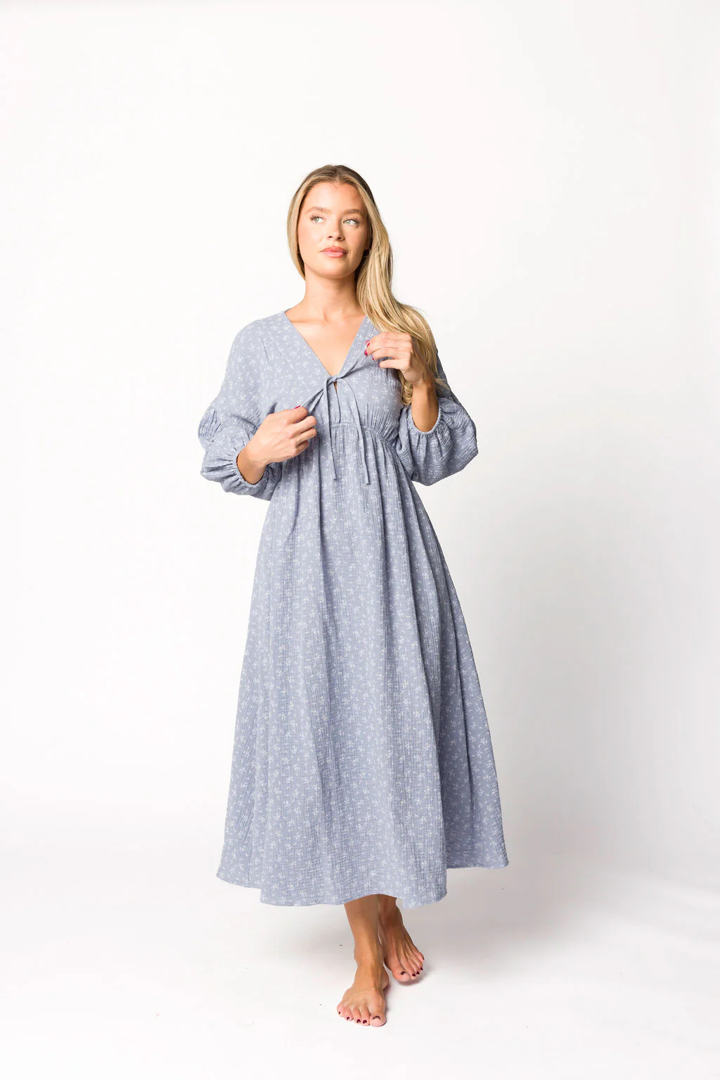 Hunter 100% Cotton Gauze Midi Dress in Indigo - Bump Friendly
