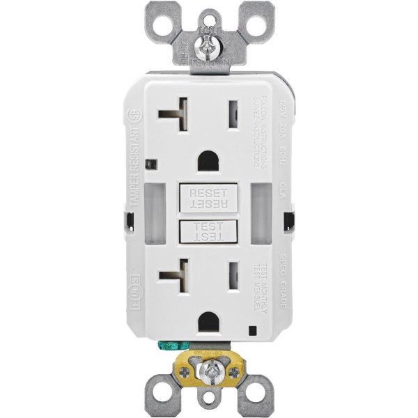 Leviton SmartLockPro Self-Test 20A White Tamper Resistant 5-20R GFCI Outlet