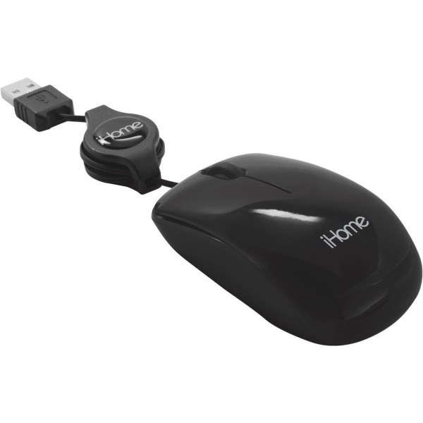 iHome Black Retractable Cord USB Travel Mouse