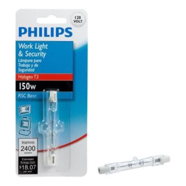 Philips 150W 120V Clear RSC Base T3 Halogen Work Light Bulb