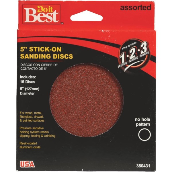 Do it Best 5 In. 150/100/60 Grit Stick-On Sanding Disc (15-Pack)