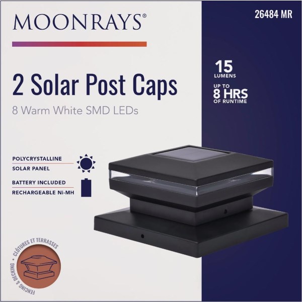 Moonrays 4 In. x 4 In. Black LED Solar Post Cap (2-Pack)