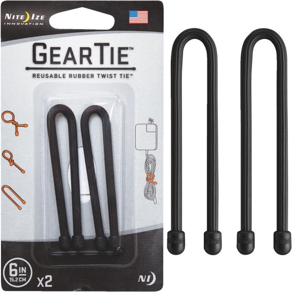 Nite Ize Gear Tie 6 In. Black Reusable Rubber Twist Tie (2-Count)