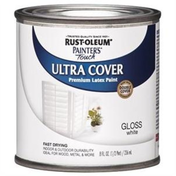 Rust-Oleum Painter’s Touch 2X Ultra Cover Premium Latex Paint, White Gloss, 1/2 Pt.