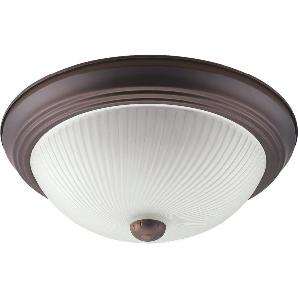 Home Impressions 13 In. Oil Rubbed Bronze Incandescent Flush Mount Ceiling Light Fixture with Frosted Swirl Glass