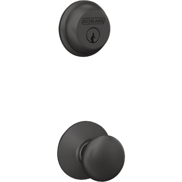 Schlage Matte Black Single Cylinder Deadbolt and Plymouth Keyed Entry Knob