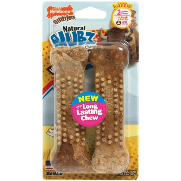 Nylabone Edibles Natural Nubz Bison Flavor Dental Dog Treat Chew (2-Pack)