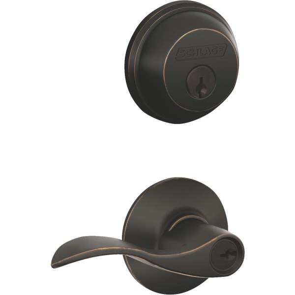 Accent Aged Bronze Single Cylinder Deadbolt & Door Lever Combo Lockset