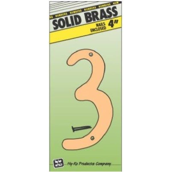 Hy-Ko 4 In. Polished Brass House Number Three