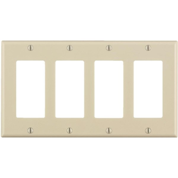 Leviton Decora 4-Gang Smooth Plastic Rocker Decorator Wall Plate, Light Almond