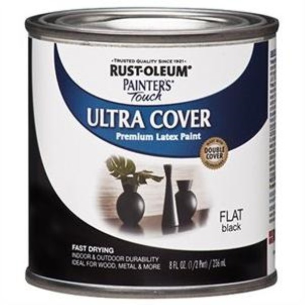 Rust-Oleum Painter’s Touch 2X Ultra Cover Premium Latex Paint, Flat Black, 1/2 Pt.