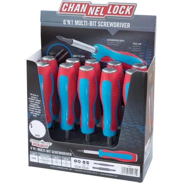 Channellock Code Blue 6-in-1 Multi-Bit Screwdrivern(10-Piece Display)