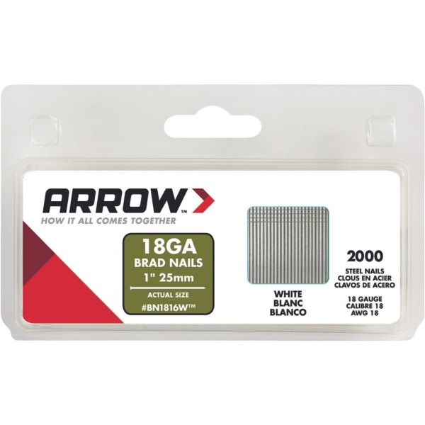 Arrow 18-Gauge White Steel Brad Nail, 1 In. (2000-Pack)