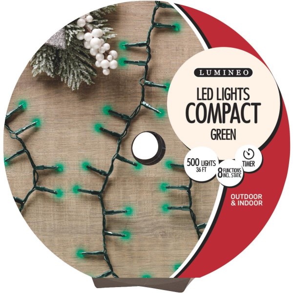 Lumineo Green 500-Bulb LED Compact Light Set with Dark Green Wire