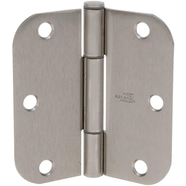 National Hardware Squeak Guard 3-1/2 In. Satin Nickel Hinge with 5/8 In. Radius (3-Count)