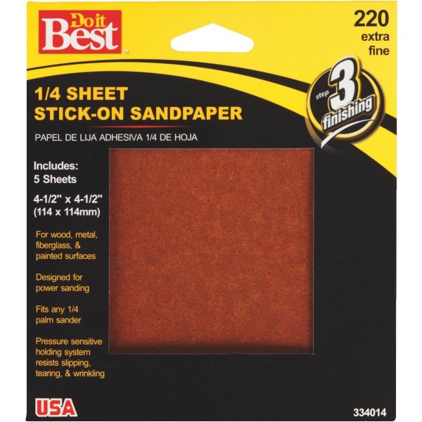 Do it Best Stick-On 220 Grit 1/4 Sheet Power Sanding Sheet (5-Pack)
