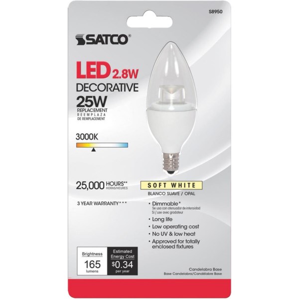 Satco 40W Equivalent Soft White B11 Candelabra LED Decorative Light Bulb