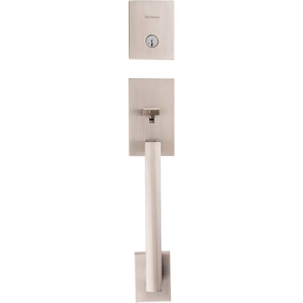 Kwikset Signature Series San Clemente Satin Nickel Entry Door Handleset with Smartkey & Halifax Lever