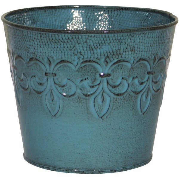 Robert Allen Fleur De Lis 10 In. Metal Surf Blue Planter