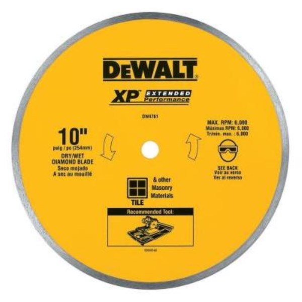 DEWALT Extended Performance 10 In. Continuous Rim Dry/Wet Cut Tile Diamond Blade