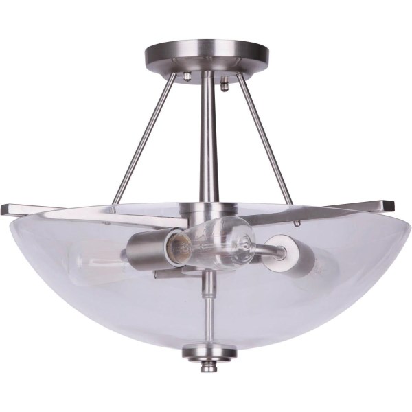 Home Impressions 15 In. Brushed Nickel Semi-Flush Mount Ceiling Light Fixture, Clear Glass
