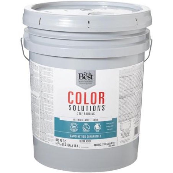 Do it Best Color Solutions Latex Self-Priming Satin Interior Wall Paint, Ultra White, 5 Gal.