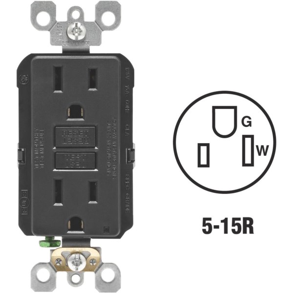 Leviton SmartlockPro Self-Test 15A Black Residential Grade Rounded Corner 5-15R GFCI Outlet