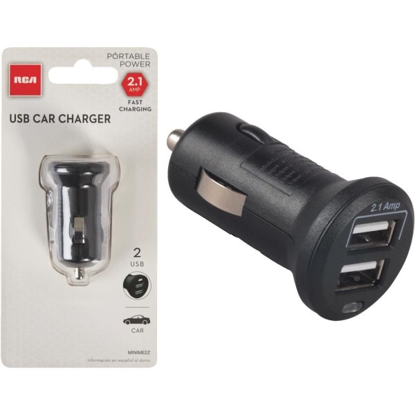 RCA 12V Dual USB Black Car Charger