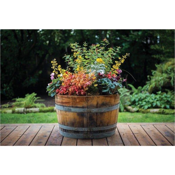 Real Wood Products 26 In. Half Oak Barrel Planter