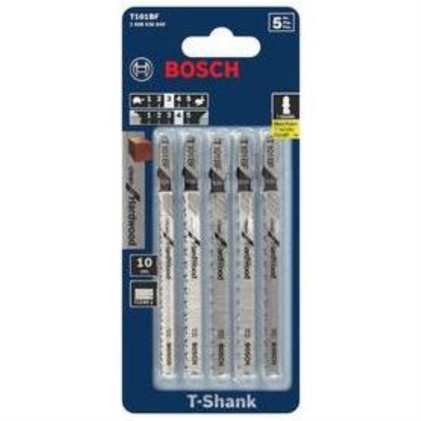 Bosch T-Shank 4 In. x 10 TPI Bi-Metal Jig Saw Blade, Clean for Hardwood (5-Pack)