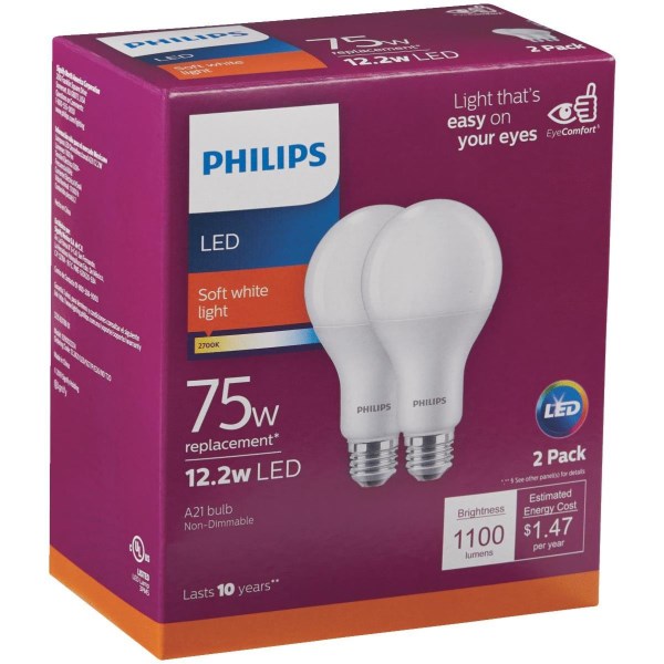 Philips 75W Equivalent Soft White A19 Medium LED Light Bulb (2-Pack)