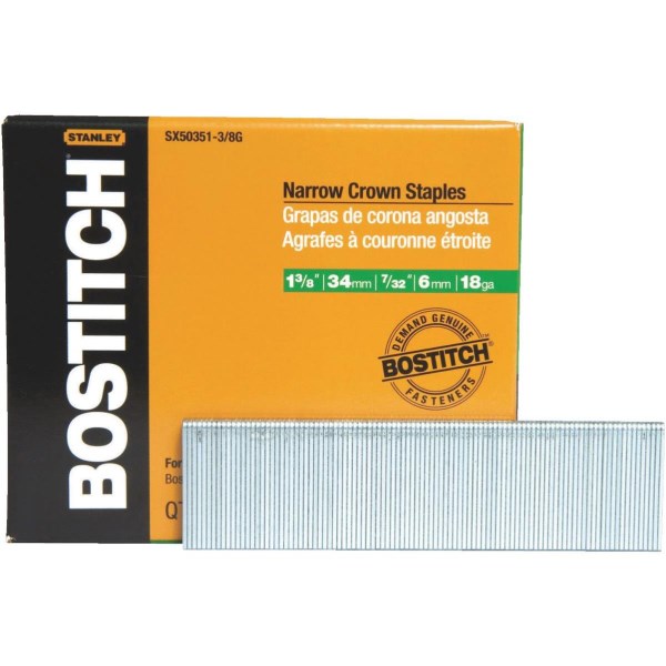 Bostitch 18-Gauge Galvanized Narrow Crown Finish Staple, 7/32 In. x 1-3/8 In. (3000 Ct.)