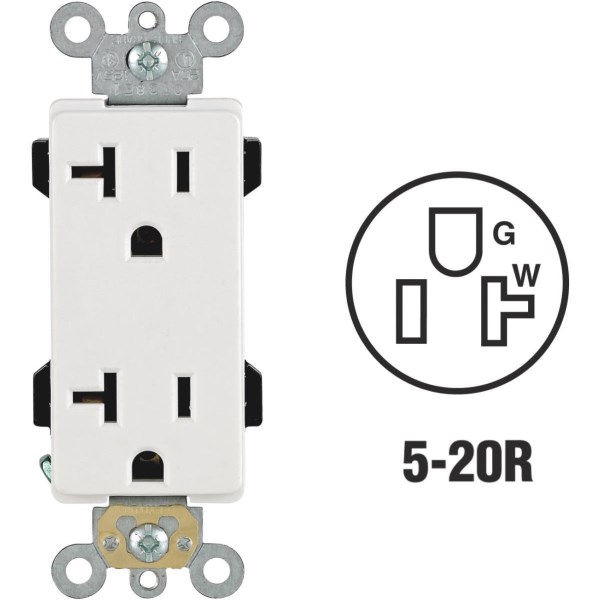Leviton Decora Plus 20A White Residential Grade 5-20R Duplex Outlet