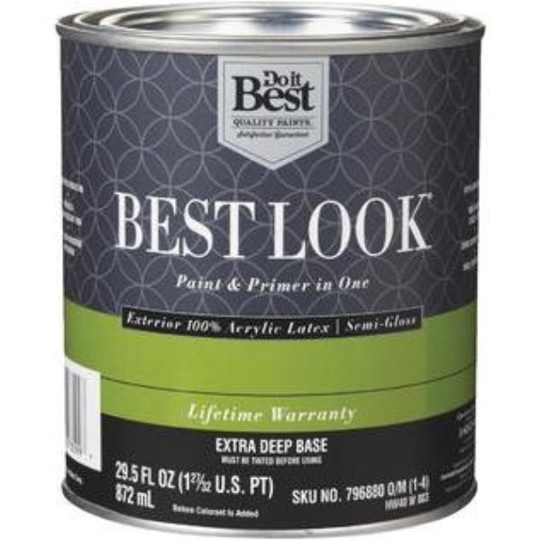 Best Look 100% Acrylic Latex Paint & Primer In One Semi-Gloss Exterior House Paint, Extra Deep Base, 1 Qt.